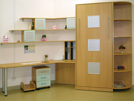 по Вашим размерам и по эскизам наших дизайнеров - идеальное решение для создания оригинальных интерьерных композиций. Такая мебель сделает функциональными и удобными как просторное помещение, так и небольшую комнату. Например, представленная детская на небольшой площади позволяет создать удобную рабочую зону - стеллажи и компьютерный стол, а также зону отдыха. Встроенная кровать в дневное время не занимает место в комнате, она складывается в нишу — шкаф.