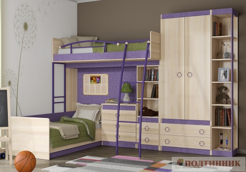 Мебель в детскую с двухъярусной кроватью Материал: ЛДСП, Металл. Производитель: ТриЯ